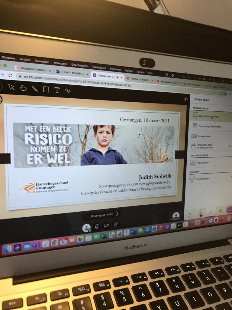 Tijdens het theoretische gedeelte zal worden ingegaan op het belang voor erkenning van risico-angst bij pedagogisch professionals in het (bewegings-) onderwijs in relatie tot de ontwikkeling van kinderen. Praktijkvoorbeelden ondersteund met wetenschappelijk onderzoeksresultaten maken de waarde van (fysieke-) risico’s voor de ontwikkeling van kinderen duidelijk. Door verschillende manieren van interactie krijgt men inzicht in de eigen mate van risico-angst.